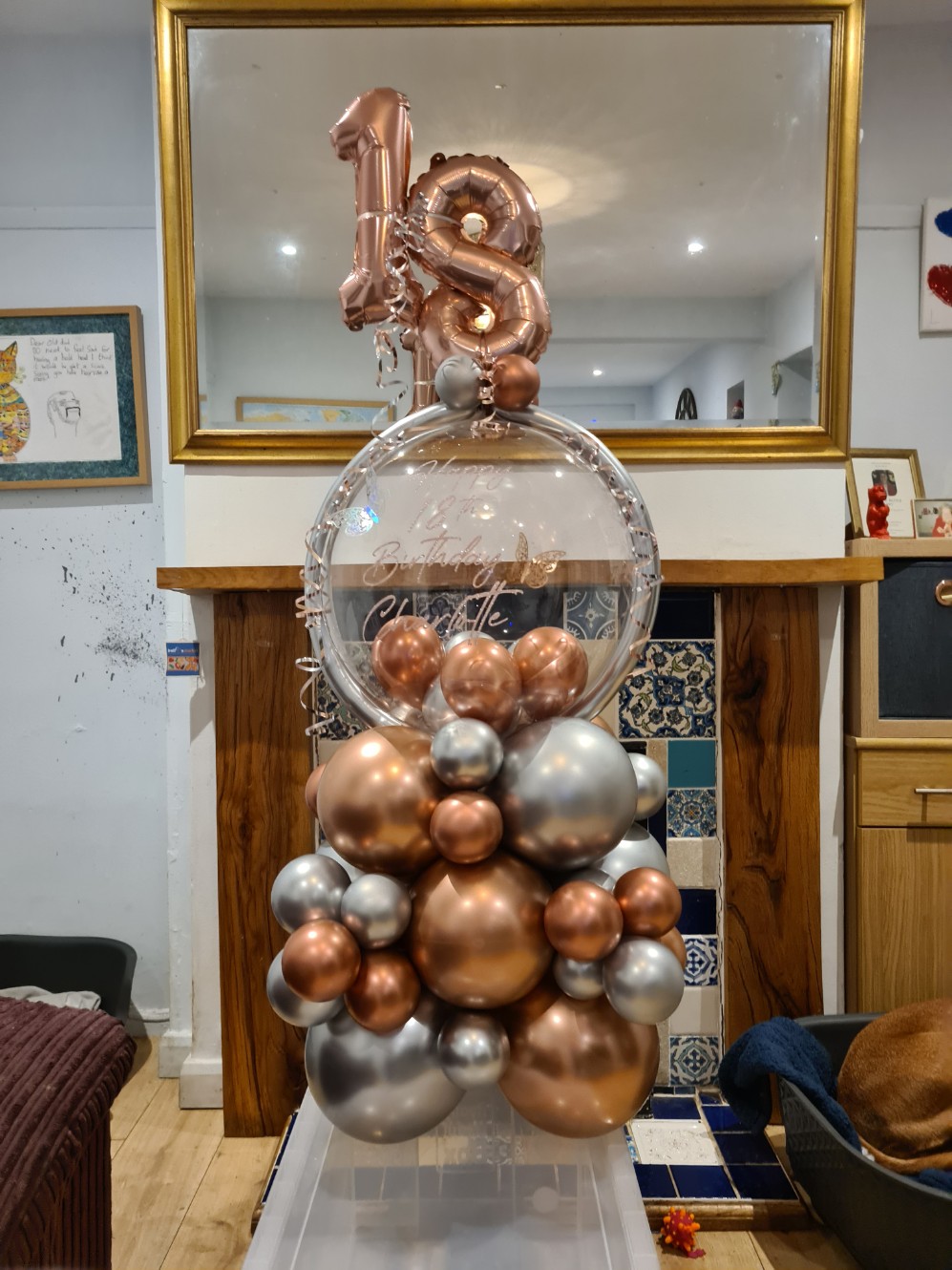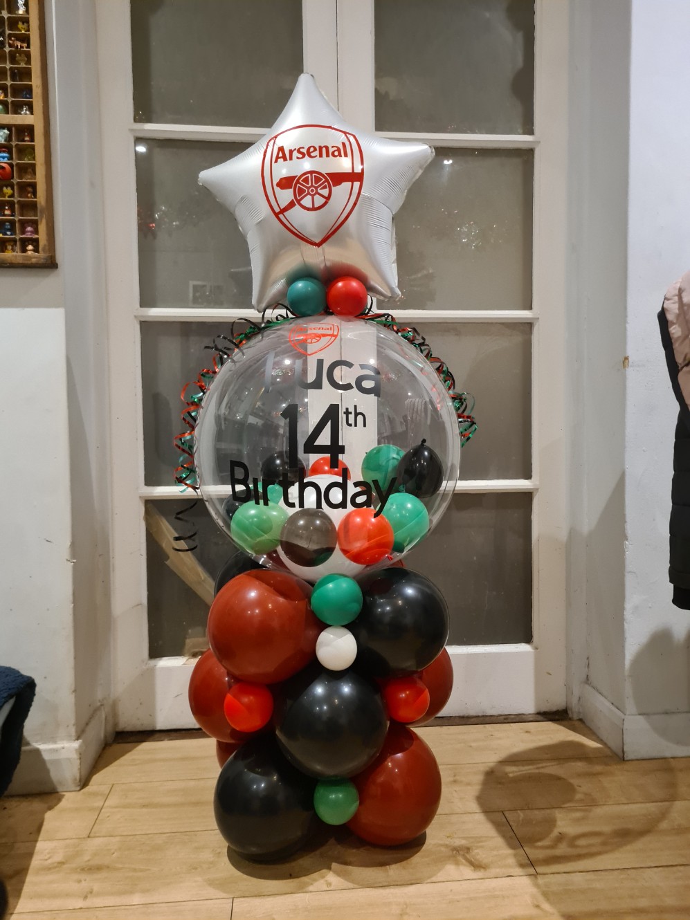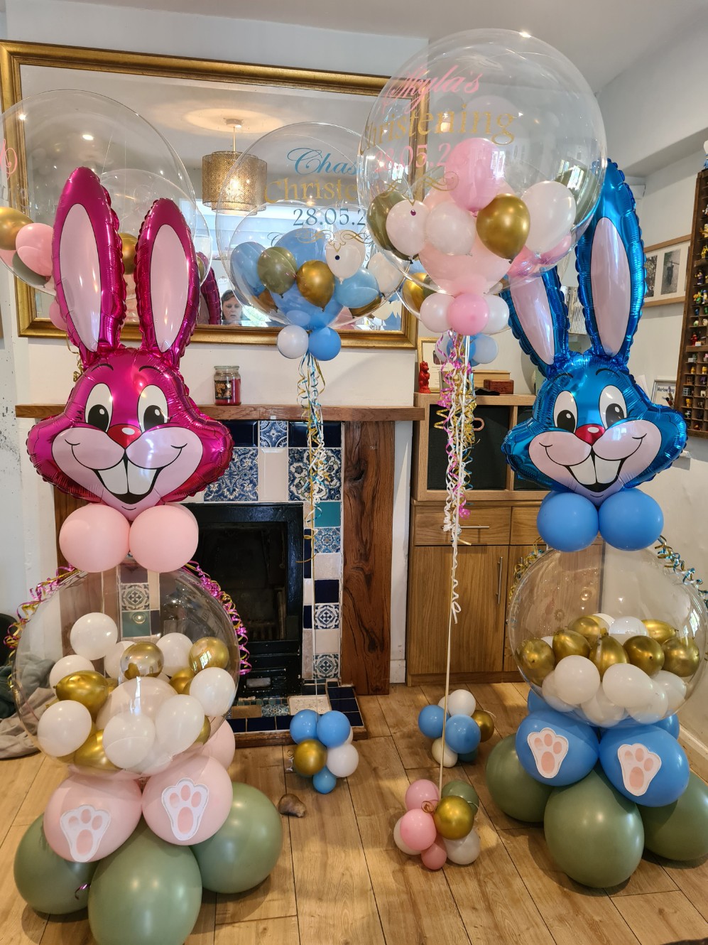 These pillars stand about 5.5 foot tall and we have lots of colours and Themes to choose from. We can place any balloon for a top from( themed or number balloons) and we can put writing on the clear bubble or on the top balloon. Prices start from - £35 Bespoke designs vairy in price depending on complexity. We can add logos, names, lights etc Lifespan - 5days +