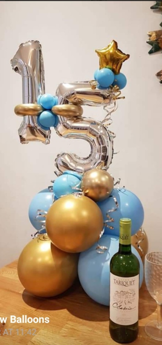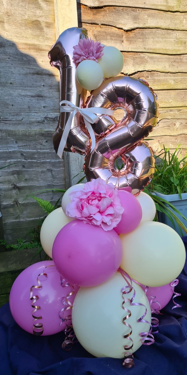 This design can be done in any number combination and and in any colours this designs sits around 2/3 foot tall and last several days/ week. We can add embellishments to complement the design costs might apply.
